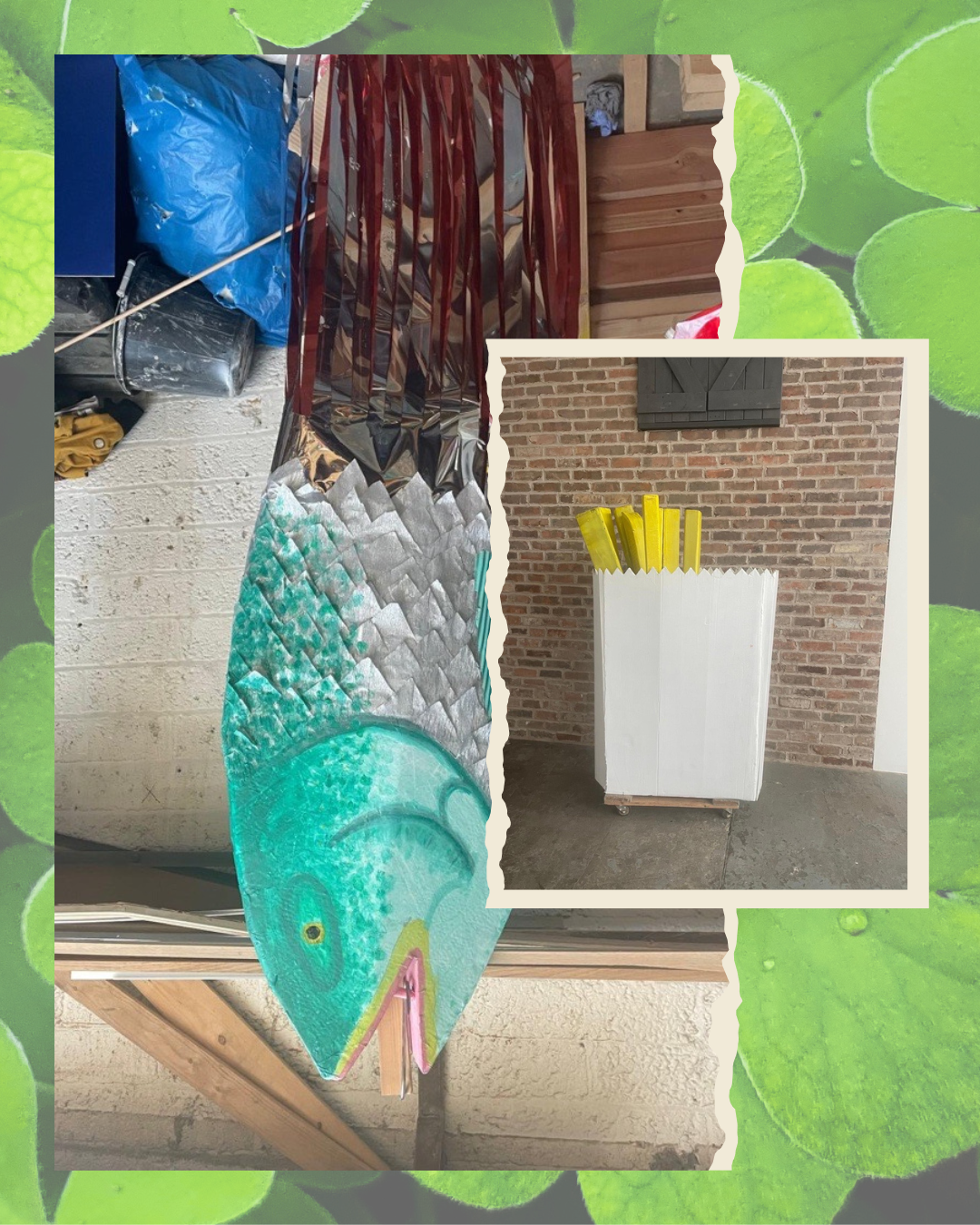 🍟🐟And Ballybough’s creativity continues with giant parade props celebrating some favourite “roots” foods including a playful giant fish and chips creation.