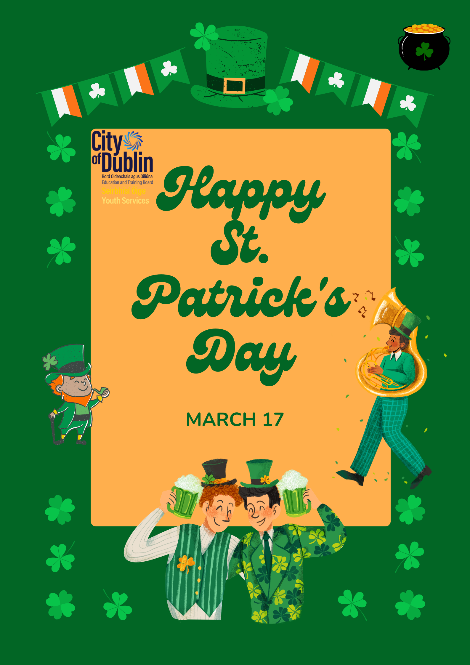 Lá Fhéile Pádraigh shona daoibh ó Sheirbhísí Óige Chathair Bhaile Átha Cliath 🍀