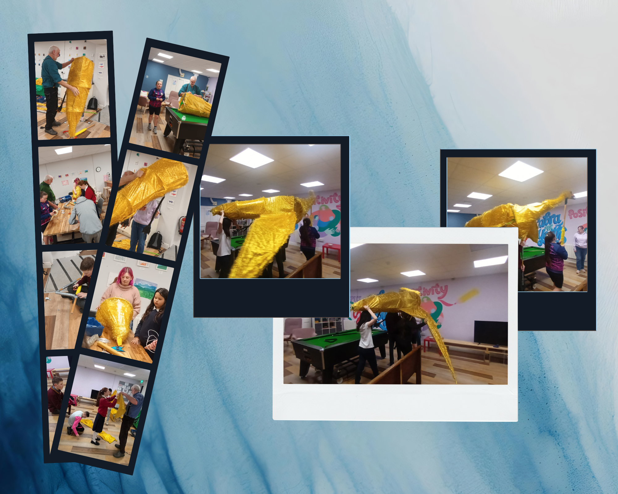 A shimmering symbol of creativity and transformation, crafted feather by feather by young people whose ideas have taken flight.